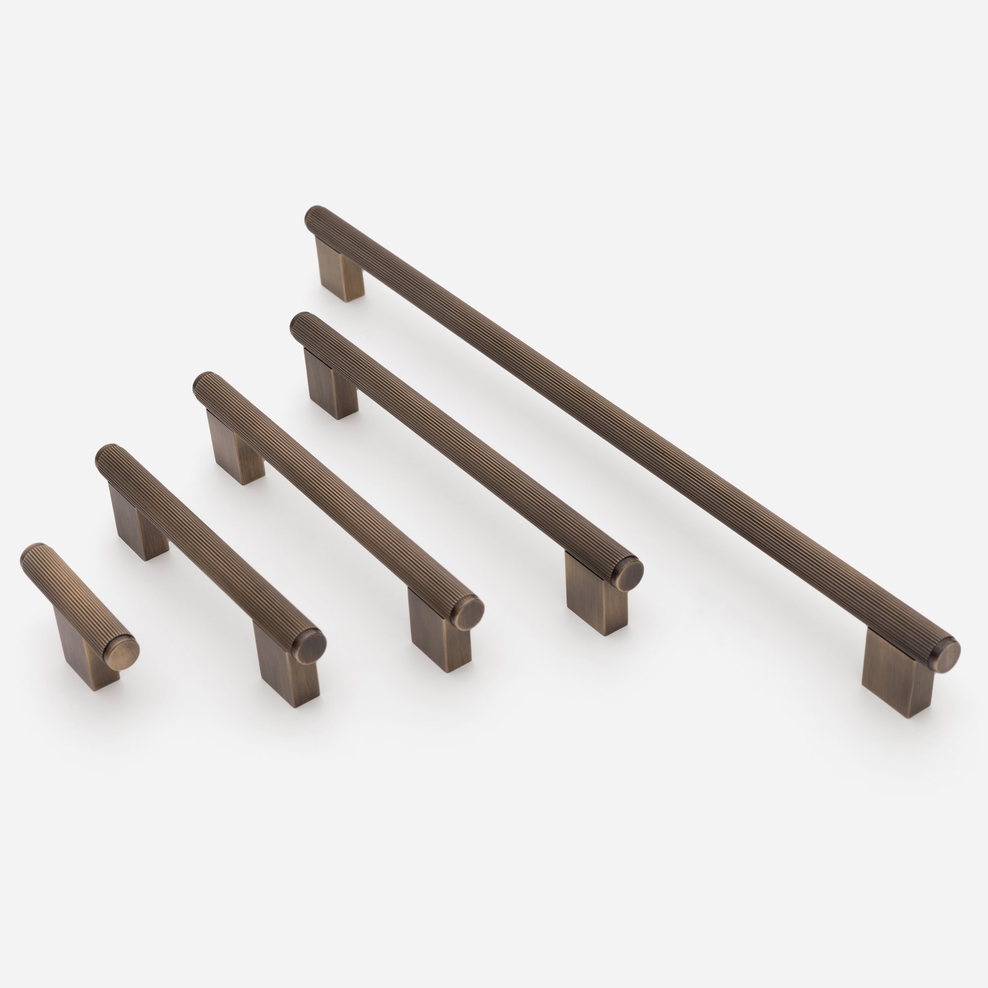 Discover the Genoa Knurled Antique Bronze Brass Handle, a blend of timeless elegance and exceptional durability. Meticulously crafted from premium brass, these handles feature a distinctive straight knurling pattern, resulting in striking diagonal lines that add modern, textured detail to any space. The sleek, square brass spacer enhances their aesthetic, seamlessly integrating style and functionality.