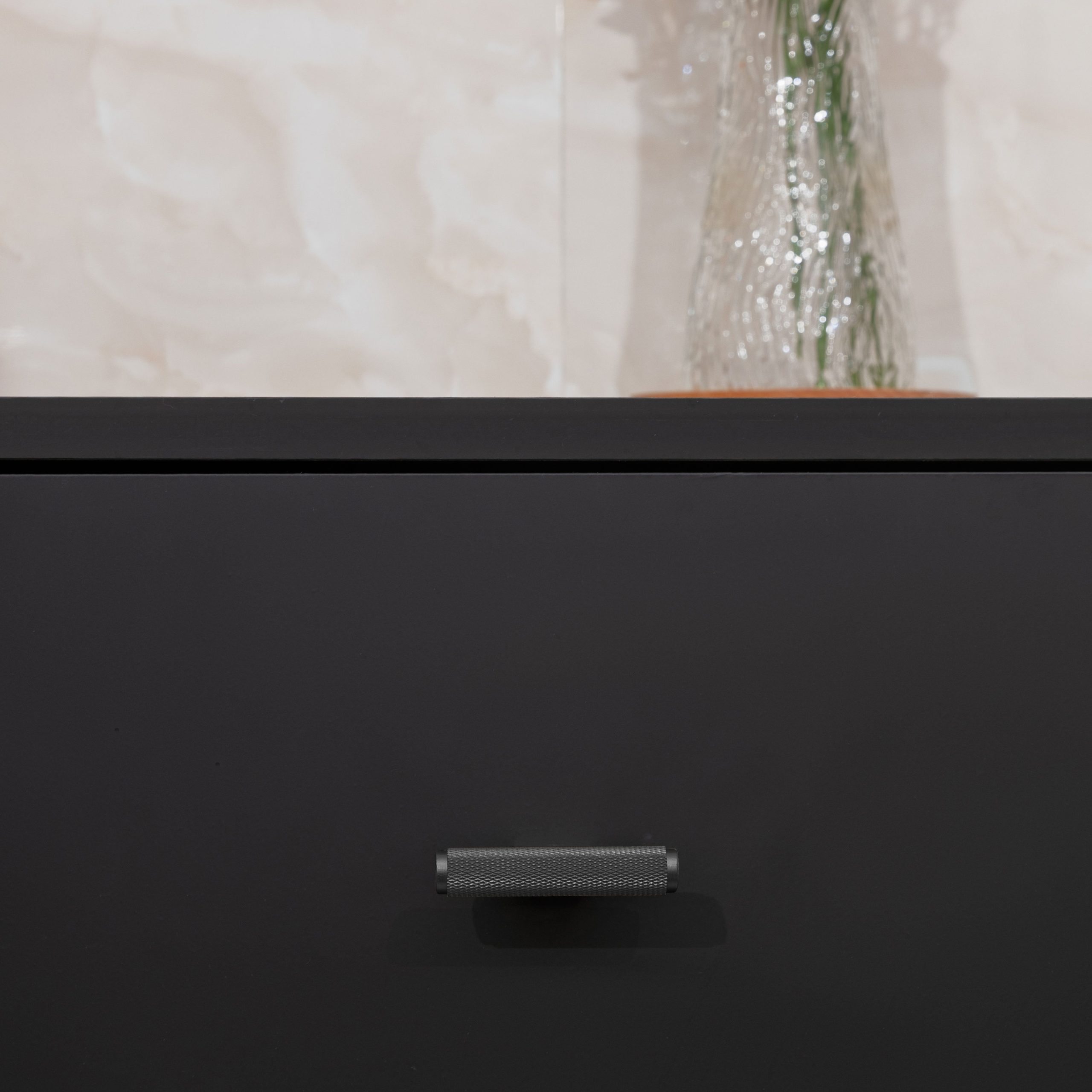 Estimated delivery between Apr 16th - May 1stThe Lecce Knurled Matte Black Brass Pull is the kind of detail that gives a space soul. Made from solid brushed brass, it plays with texture and tone in all the right ways. The diamond knurled centre adds just enough edge, while the smooth cylindrical ends bring softness and balance. A squared spacer anchors the design, giving it a structured feel that’s both refined and quietly confident.