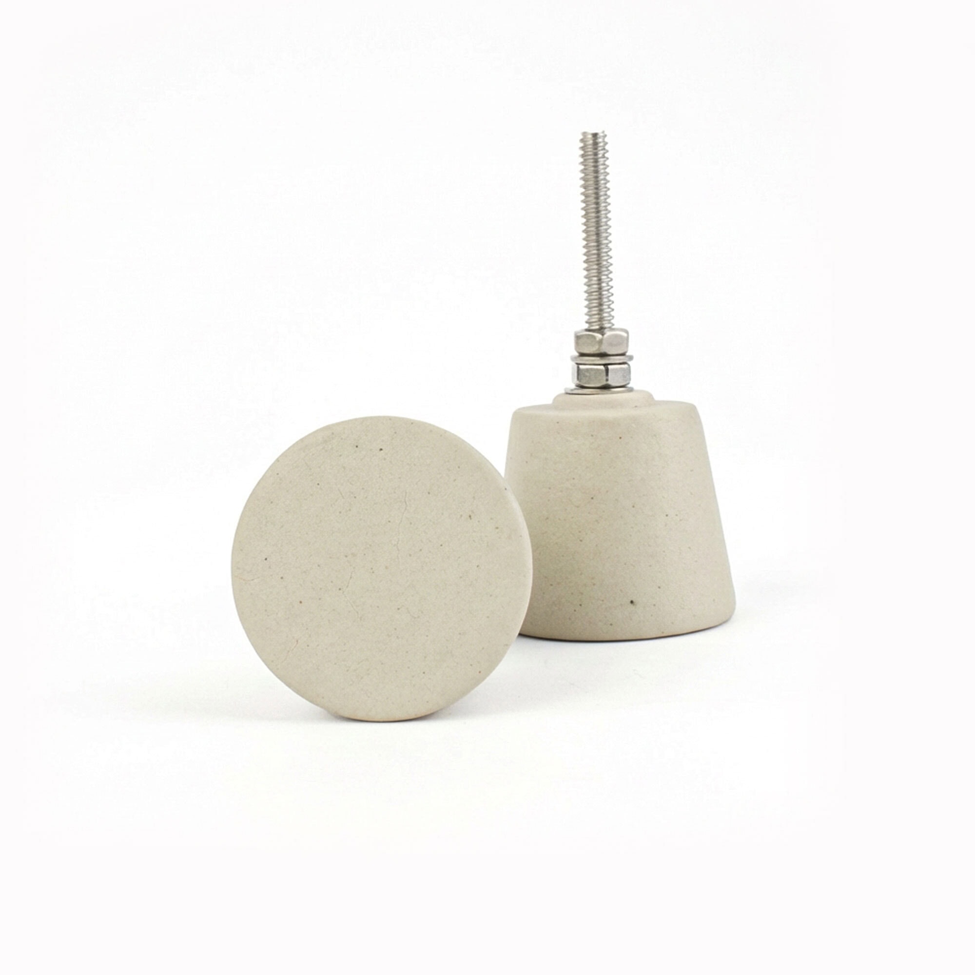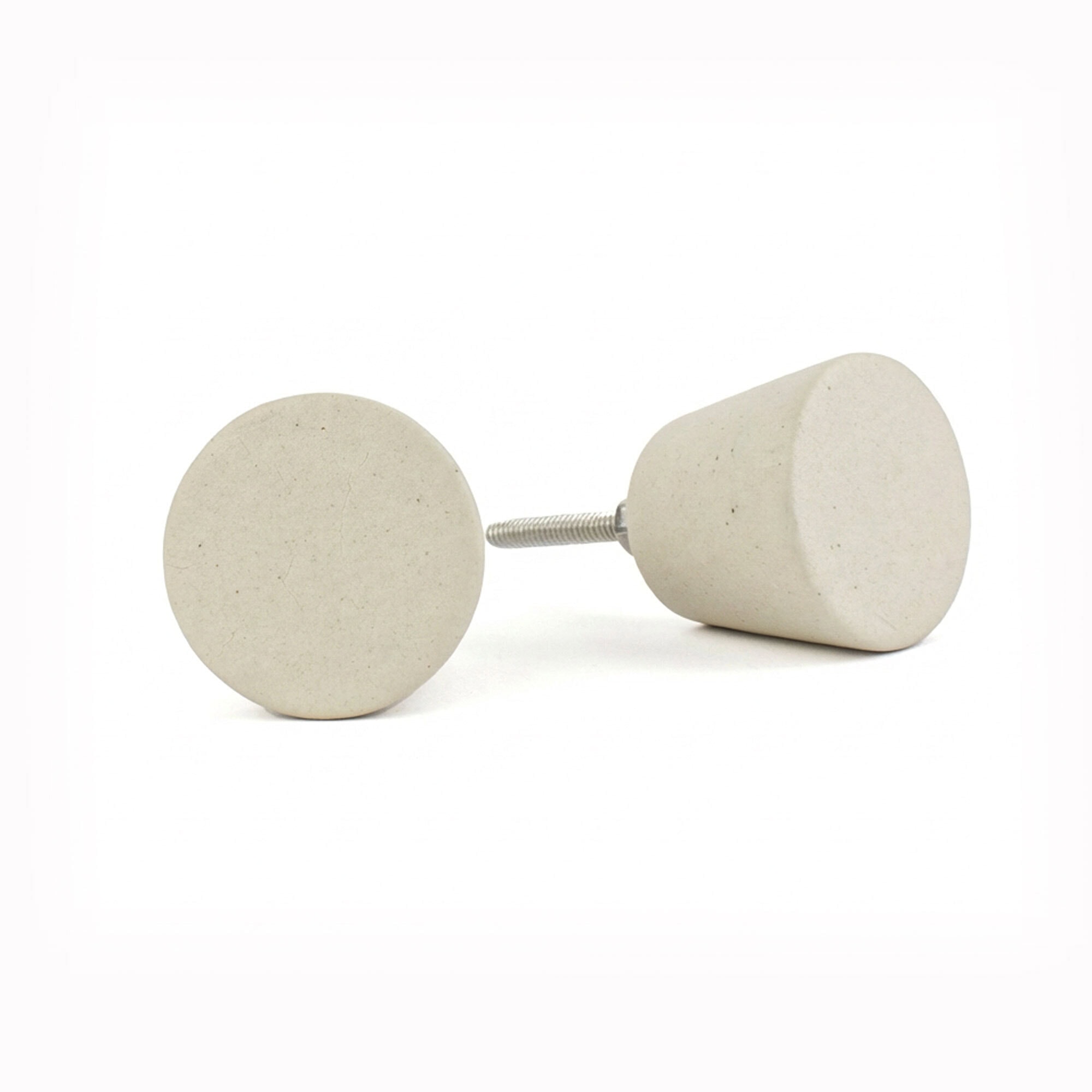 Add a textural aesthetic to your space with our Matte Oatmeal Beige Arc Cylinder Ceramic Knob. Unglazed, it has the appearance and feel of real concrete without the harsh coldness that concrete can emanate. Instead, this ceramic knob exudes a fresh elegance that makes it a chic décor accessory. It also boasts fluid curves in an unconventional shape that can dress up or dress down your space. This cabinet knob is definitely a one-of-a-kind piece you won’t find anywhere else. And what’s more is that it’s made from a sustainable material that’s kind to the environment.